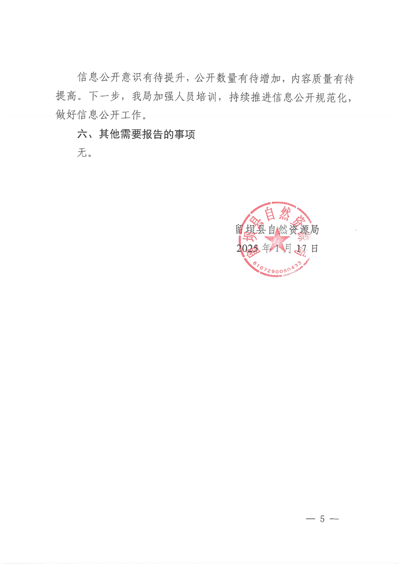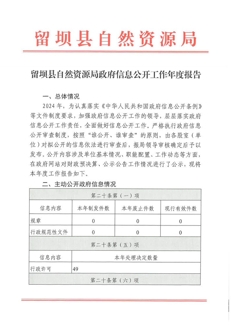 留坝县自然资源局2024年政府信息公开工作年度报告