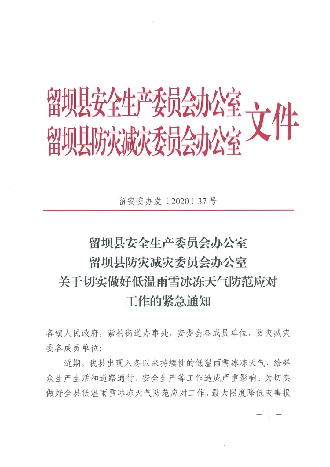 据气象部门预测,未来一周冷空气活动频繁,气温持续走低。鉴于此类低温雨雪冰冻天气,留坝县安全生产委员会办公室与留坝县防灾减灾委员会办公室联合印发了《关于切实做好低温雨雪冰冻天气防范应对工作的紧急通知》,切实将各项工作责任落到实处。