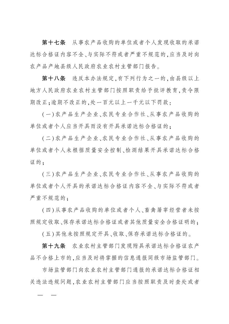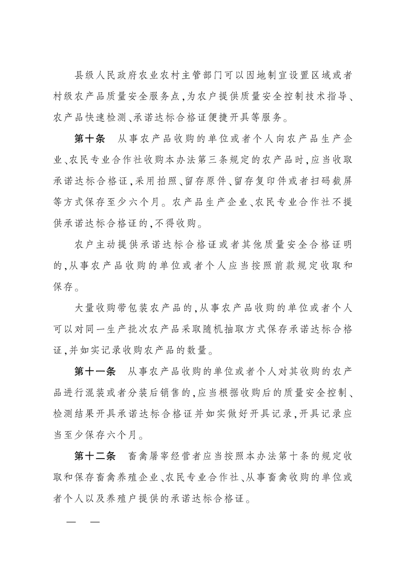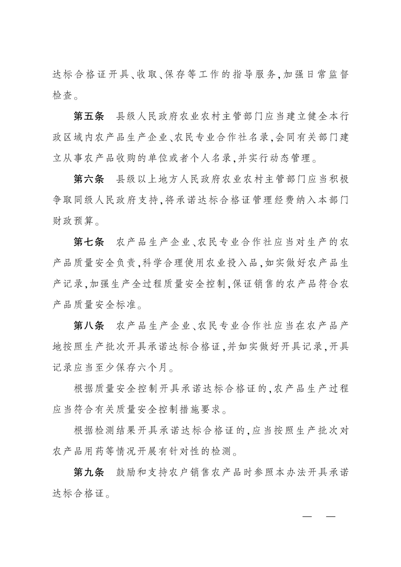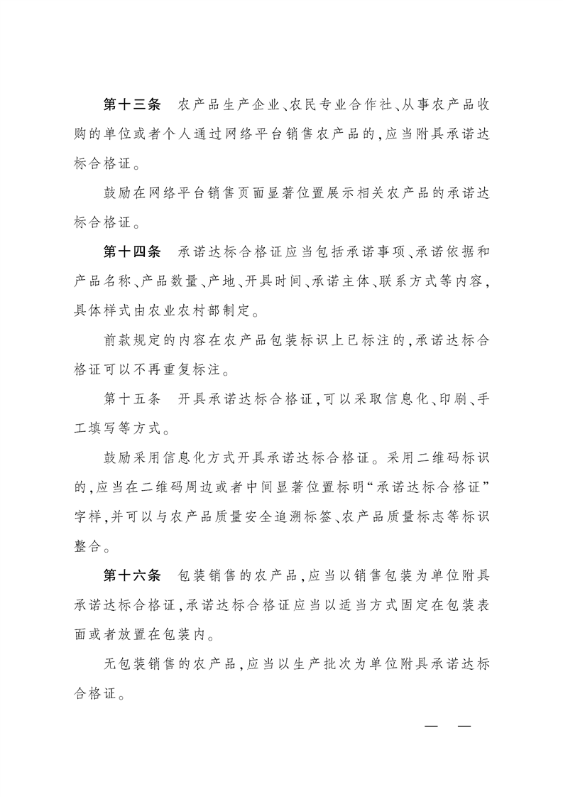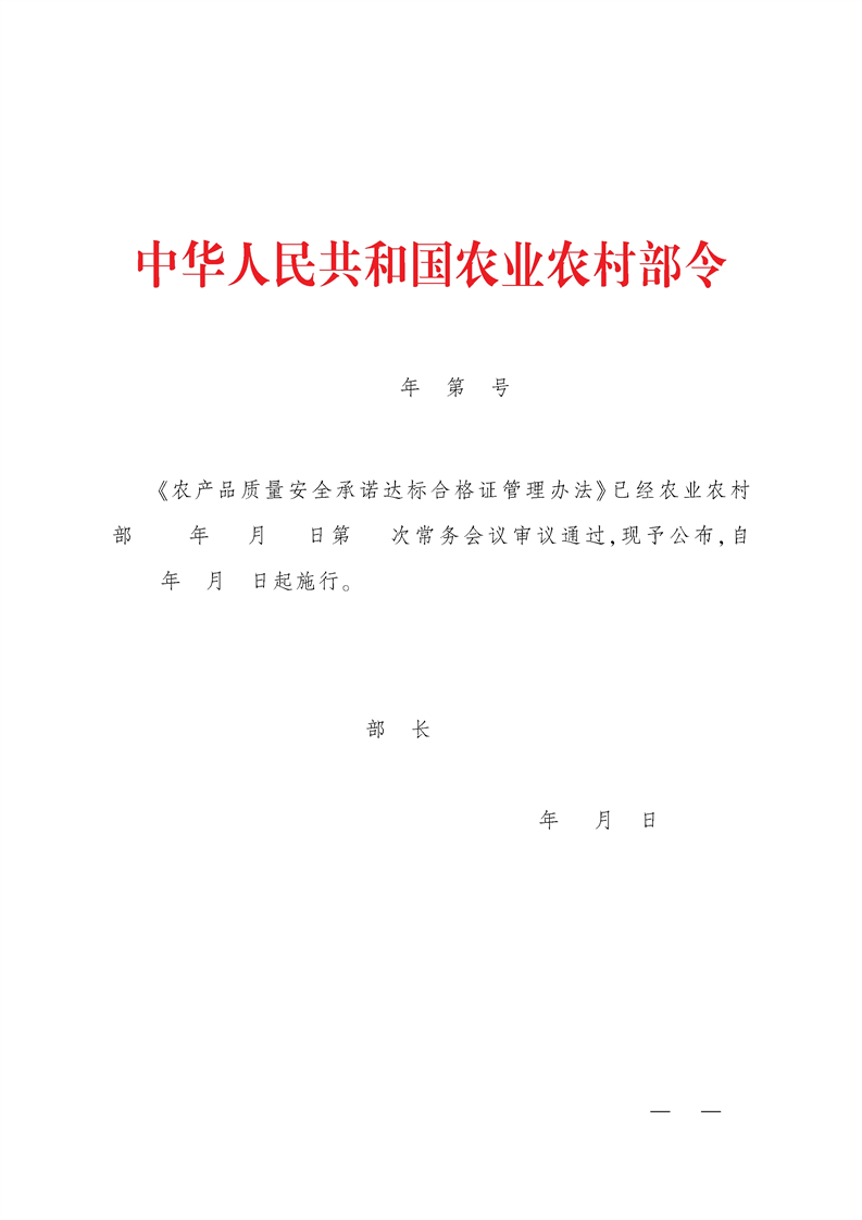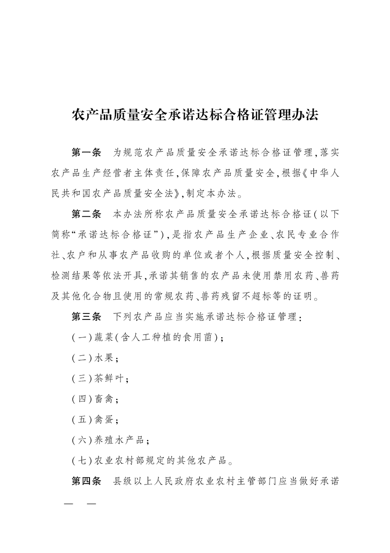 中华人民共和国农业农村部令(2025年 第4号)《农产品质量安全承诺达标合格证管理办法》