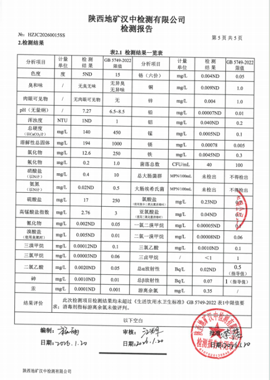 用户水龙头(未梢水)水质 |