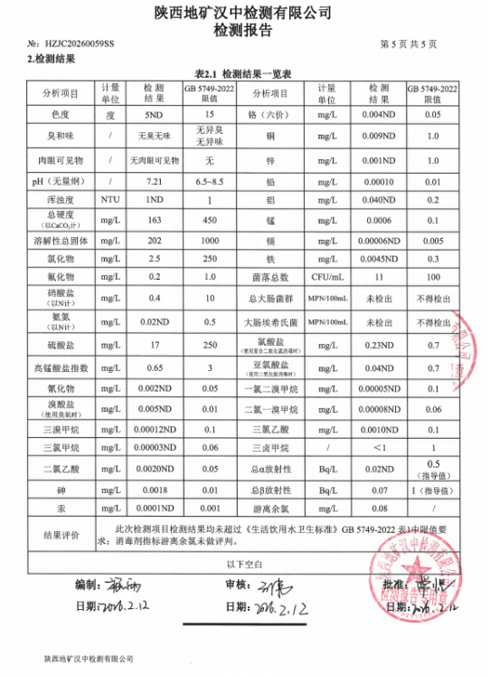 留坝县2026年2月份饮用水水质安全状况公示