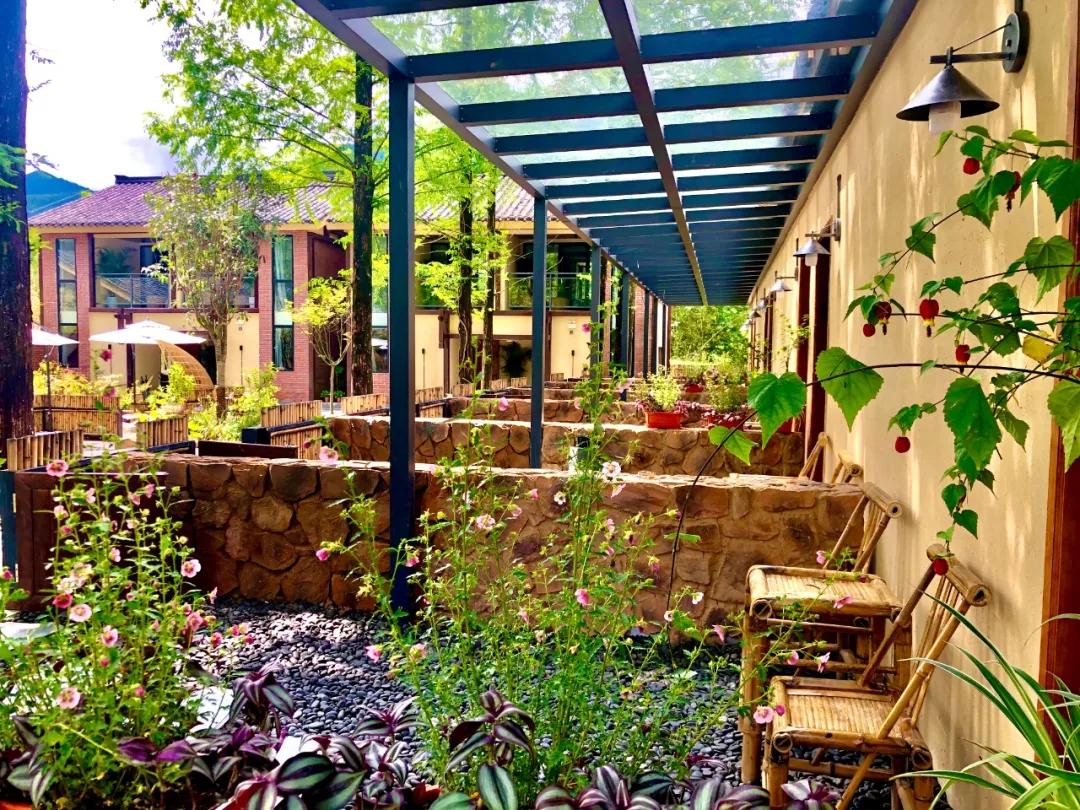 道班·宿是由曾用来管护公路的废弃道班改造而成的民宿,将当地交通道班元素与自然风景巧妙结合,让每一个小院既保留本色又增添了一抹别样的乡土风情。不同于现代房屋的千篇一律,以各条公路命名的单元小院和精致的景观小品,以及繁茂的水杉树簇拥下的红砖墙、青瓦片都让空间中散发出温暖的自然质感。12间客房南北通透、复式阁楼静谧温馨,家具都是纯实木“量身定制”,整体慵懒而舒适。给每一位从都市回归自然的人们带来一种闲看庭前花开花落,不问世上云卷云舒的慢生活。