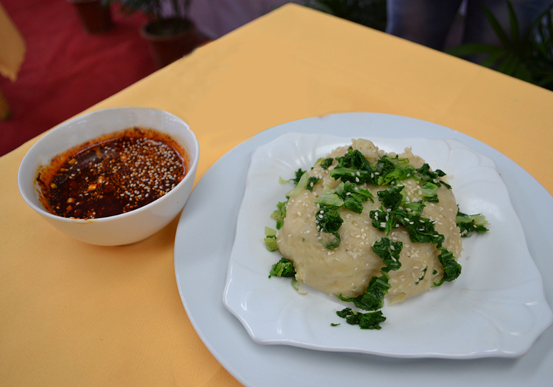 留坝有“洋芋糍粑,胀死老汉”的民间戏语,一是指洋芋糍粑香味诱人,二是因洋芋糍粑老少皆宜。洋芋糍粑取材留坝闸口石,由于生长时间长,洋芋质地结构紧密、淀粉含量极高,粘性好,制作的洋芋糍粑色泽如玉,清香扑鼻,既美味营养,又具有美容瘦身作用。如用自制的酸菜水或泡菜盐水、葱花、精盐炒熟,配以姜末、蒜汁、花椒粉、红油辣子等佐料调好,就是名副其实价廉物美的待客佳肴。