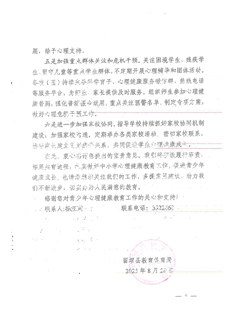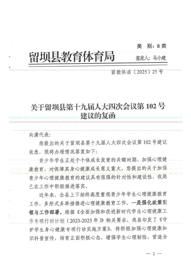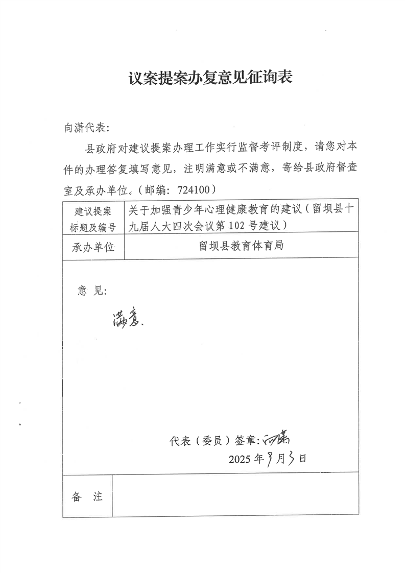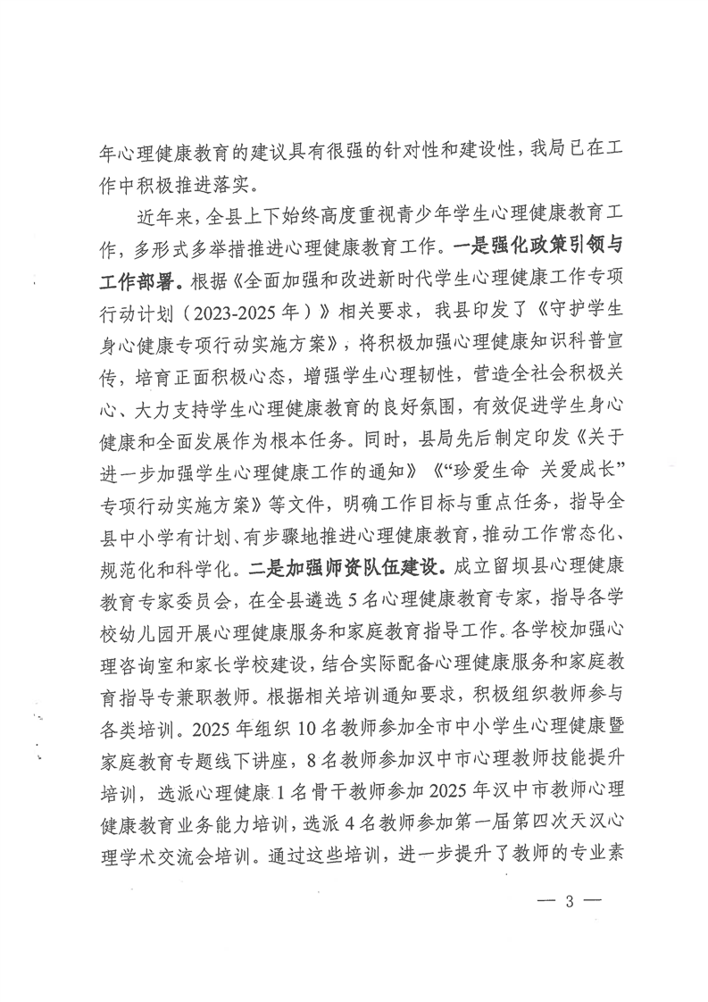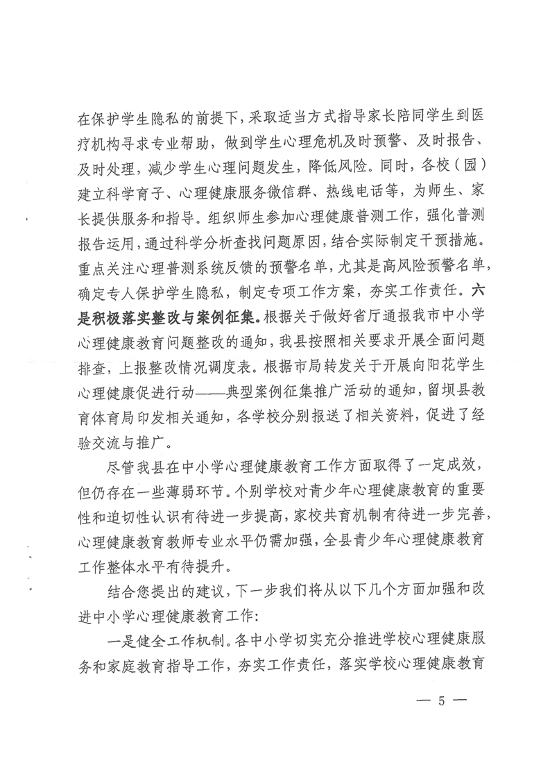 关于加强青少年心理健康教育的建议的复函