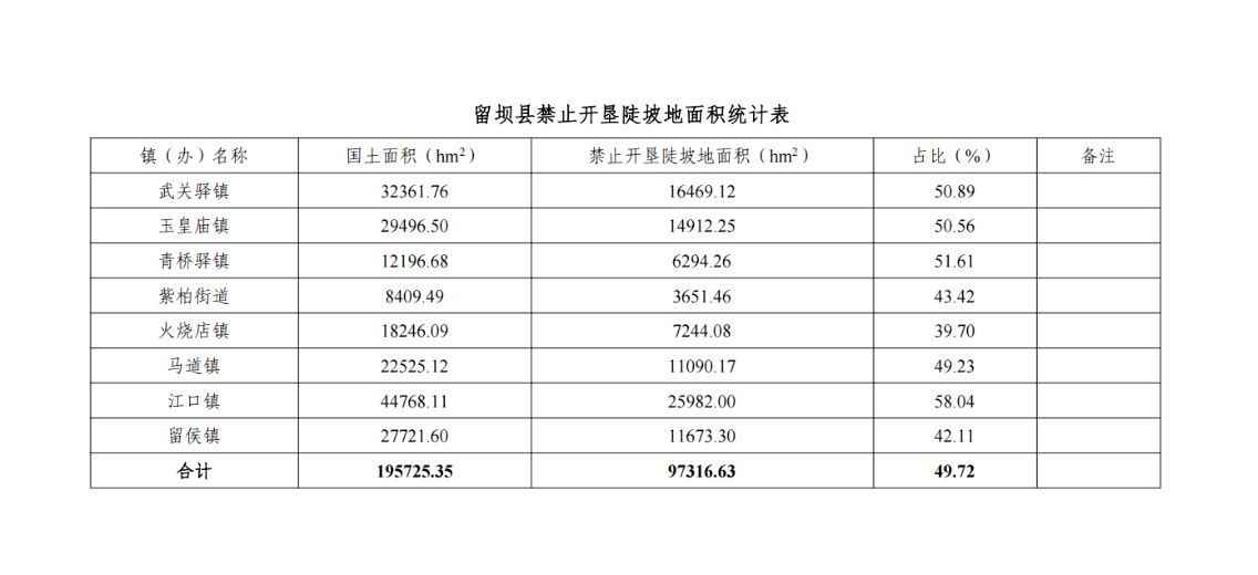 附件:1.留坝县禁止开垦陡坡地划定范围成果表