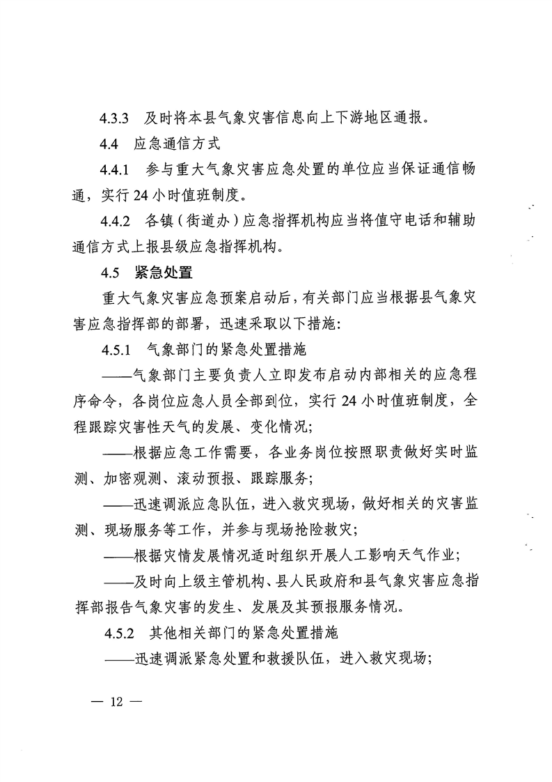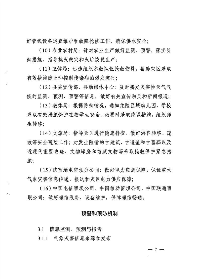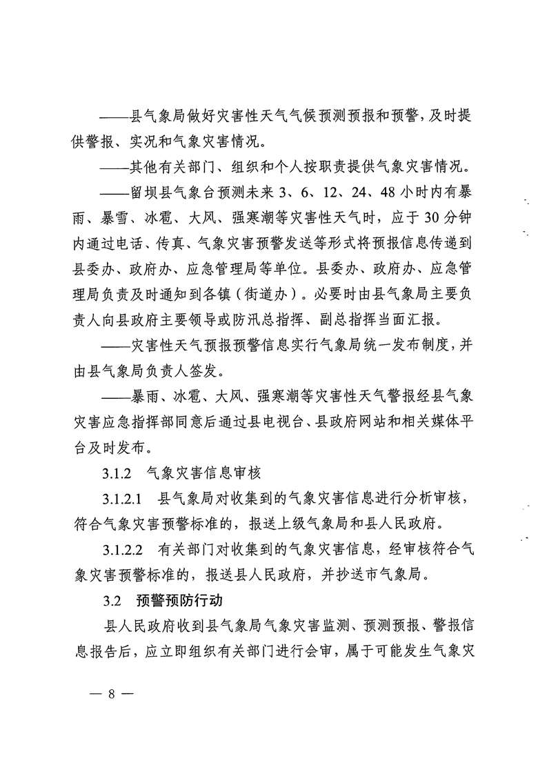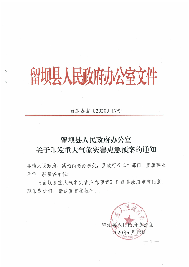 留坝县人民政府办公室关于印发重大气象灾害应急预案的通知