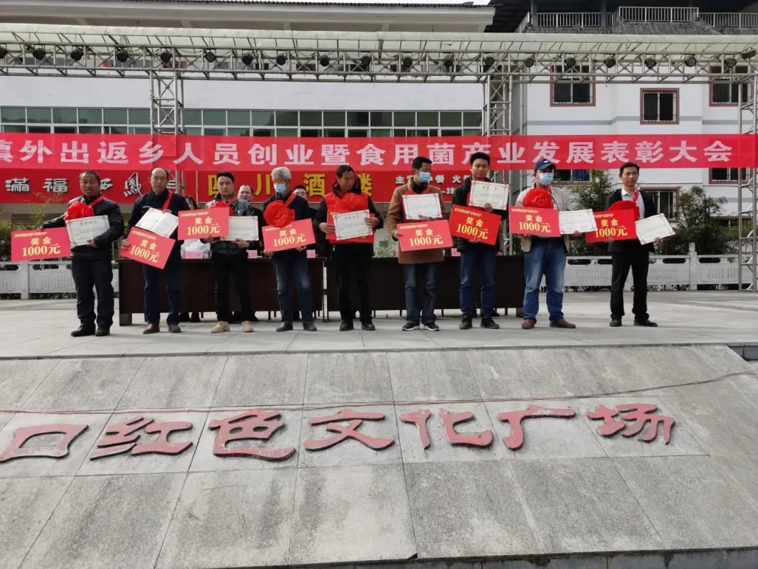 3月5日,江口镇外出返乡人员创业暨食用菌产业发展表彰大会在红色文化广场隆重举行。现场最吸眼球的就是食用菌产业发展先进集体和示范户的代表,他们个个正襟危坐、身带红花,满脸喜悦。
